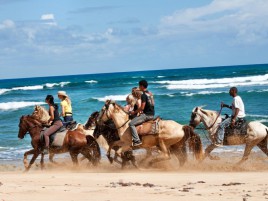 Ganz individuell der „Strand extrem Ausritt“ fast 40 Kilometer absolut unberührter Strand führt uns von La Vacama nach Laguna Limon. Palmen gesäumte Sandwege immer mit Blick auf das türkisfarbene Meer und die Möglichkeit jederzeit am Wasser entlang zu reiten, ein Traum. Für den zwei Tages-Ausritt ist natürlich auch eine Übernachtung in Laguna Limon im Hotel Rancho La Cueva eingeplant. Pures Karibikfeeling!